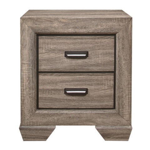 Blending the elements of contemporary design and rustic aesthetic, this Collection is a unique addition to your bedroom. Dark under-paneling serves to highlight the natural finish enhancing the embossed faux-wood veneer of the nightstands drawer fronts. Contrasting cup hardware punctuates each drawer front.