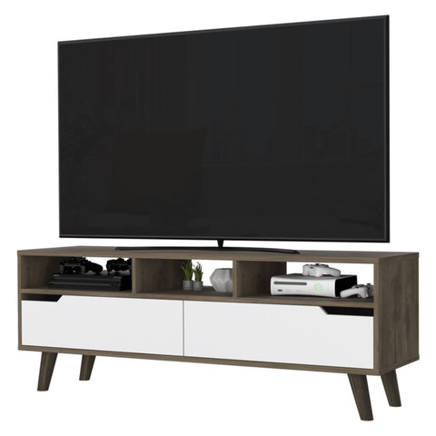 New Haven 2-Drawer 3-Shelf TV Stand Dark Walnut and White B06280718