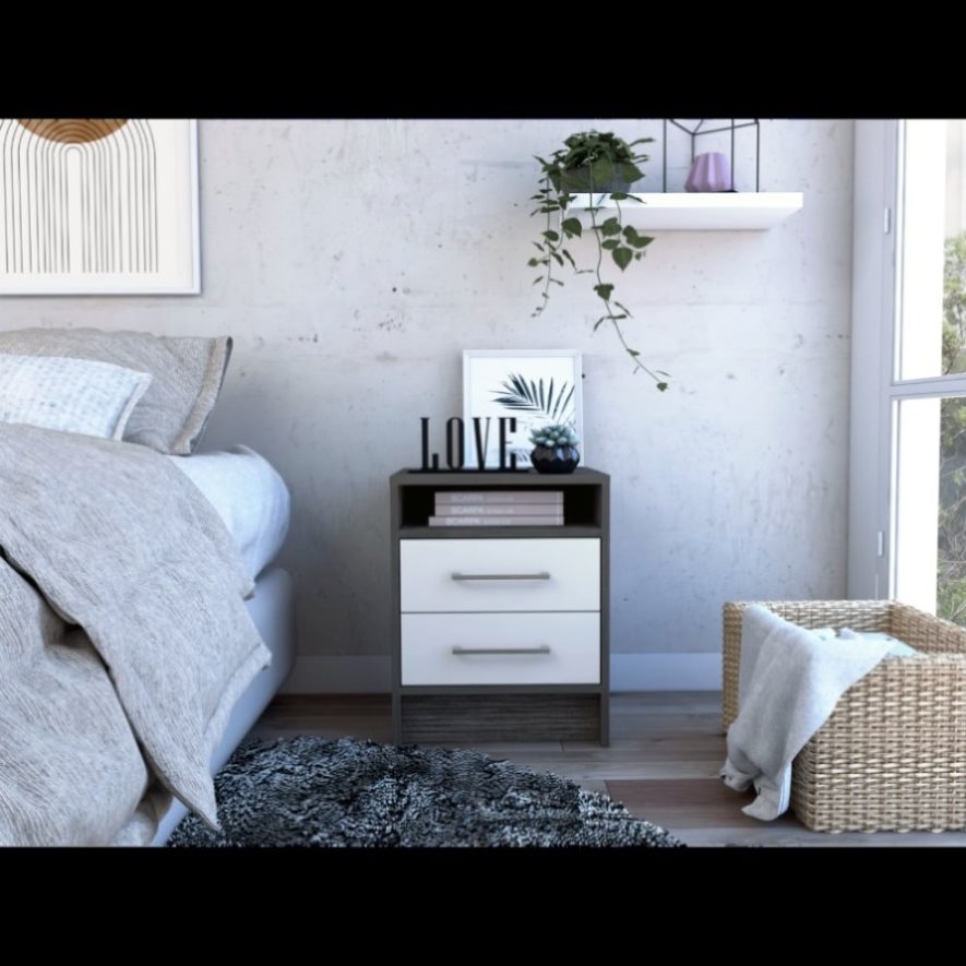 Nightstand 20"H, Two Drawers, Superior Top, Metal Handles, Smokey Oak / White B097133064
