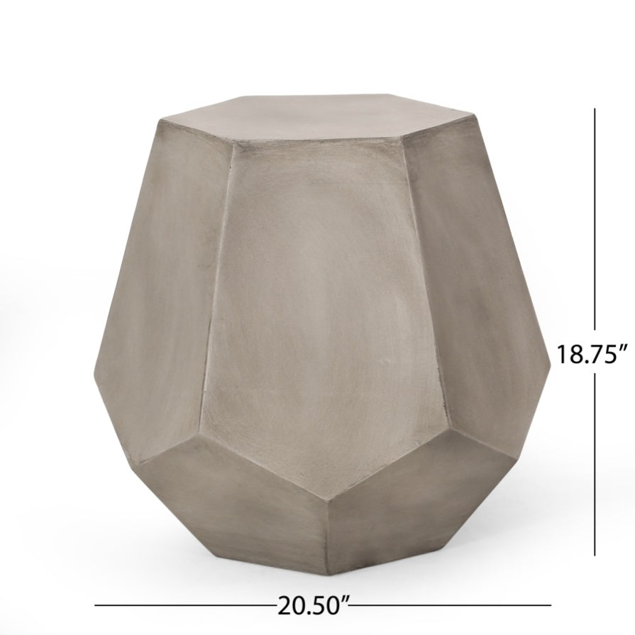 Present the perfect balance of design and function to your space for an enhanced outdoor experience. With a smooth lightweight concrete structure and modern design, this side table offers high durability and stunning looks for your backyard or patio. Perfect as an end table next to your chat set or sectional, this piece will hold any snacks or chilled drinks in sophisticated grace. Finished with a geometric shape and solid structure, this table is a seamless addition to any space.