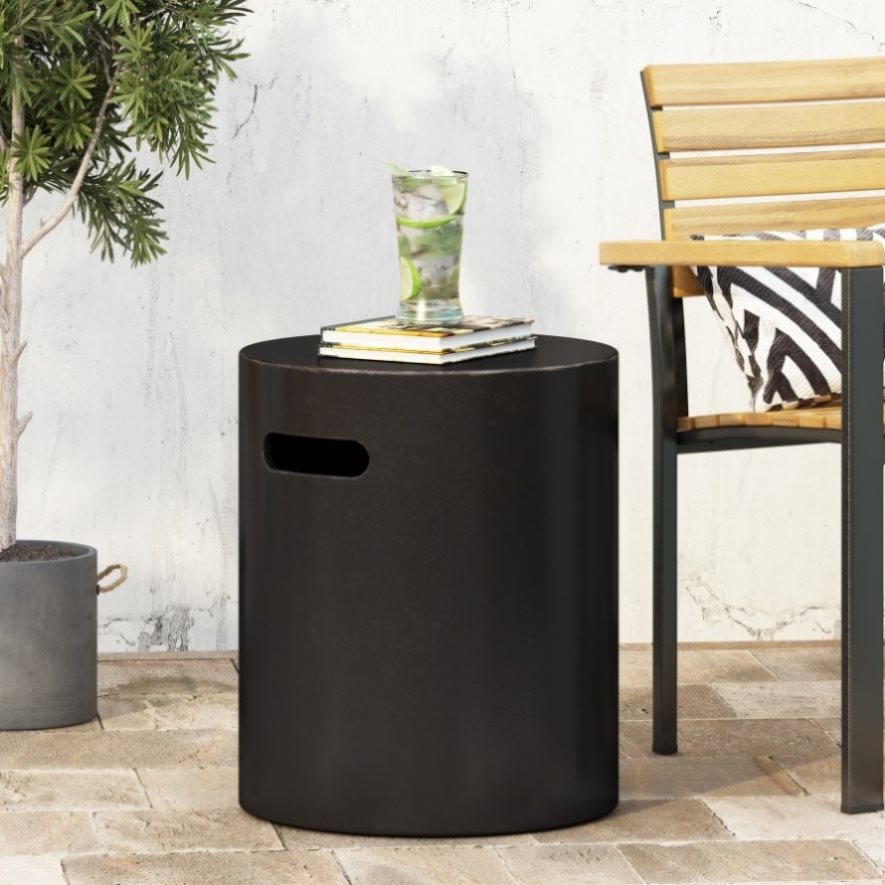 A TOUCH OF PERSONALITY: Bring your outdoor space to life with our end table that features a simple cylindrical structure and a cutout handle. With charming aesthetics, this side table will be sure to enliven any home.