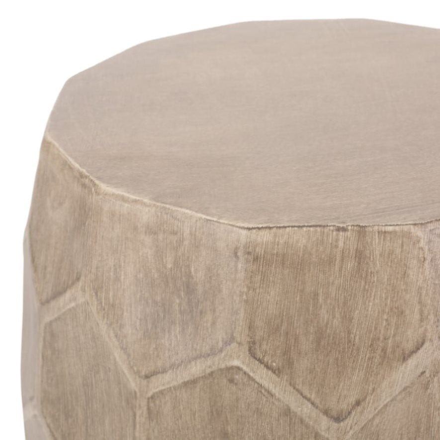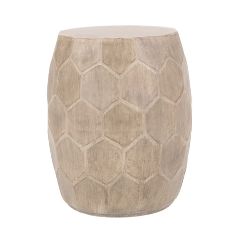 A touch of personality: bring your outdoor space to life with our end table which features a natural wood finish with a unique honeycomb pattern and a lovely barrel structure. With charming aesthetics, this side table will be sure to enliven any home.