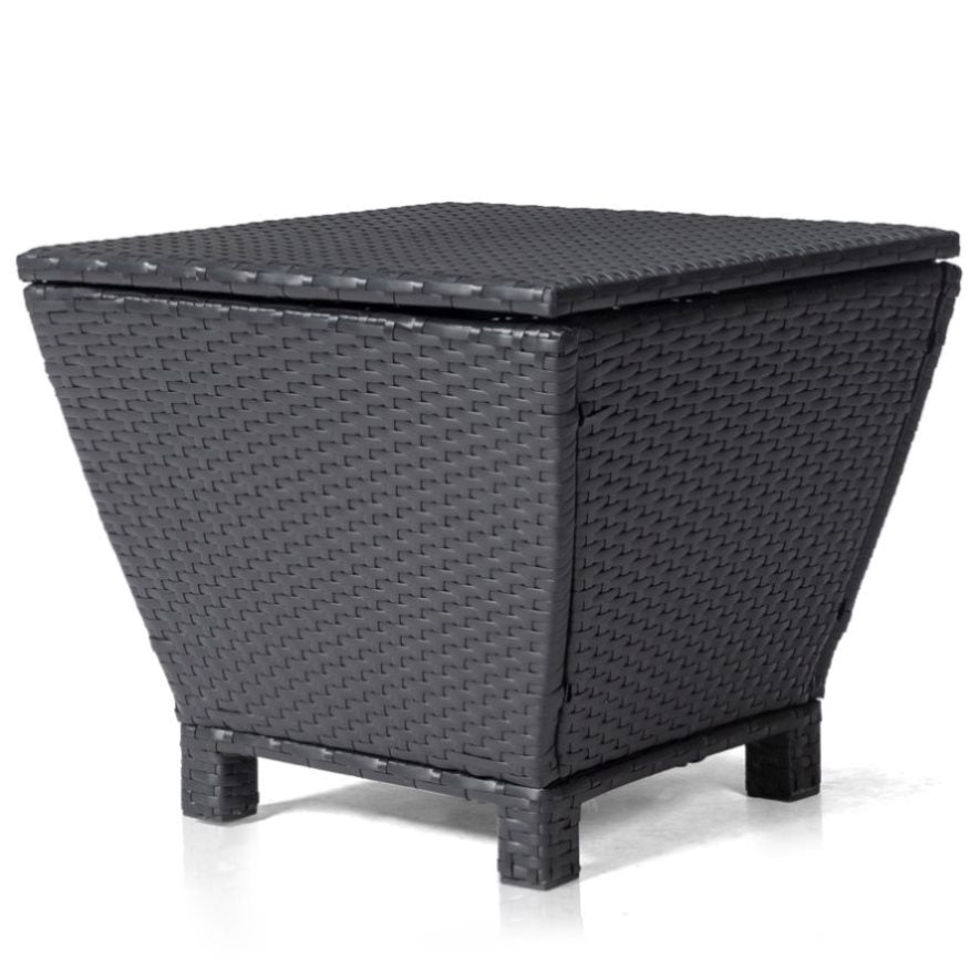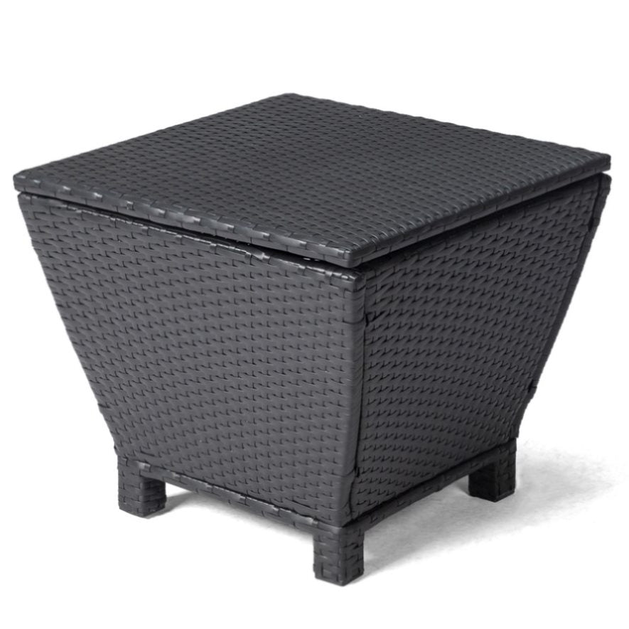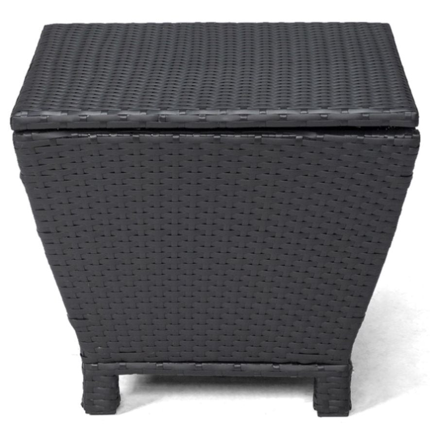 Outdoor PE Wicker Side Table with Storage, Small Patio Storage Bin Container for Hose Cushion Towel, 92404890