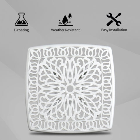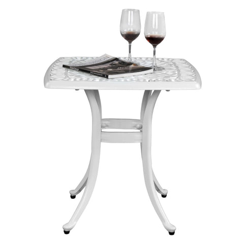 Experience the perfect blend of elegance and durability with the Outdoorr Cast Aluminum Square Table. Designed with a taste for classic styles, this white square table enhances any patio, garden, or balcony setting. The intricately designed tabletop showcases a timeless openwork floral pattern, adding a touch of nobility and vintage charm. This versatile piece can be used as an end table, side table, cocktail table, or even as a chic outdoor bar table, making it ideal for hosting gatherings or simply enjoying a peaceful outdoor moment.