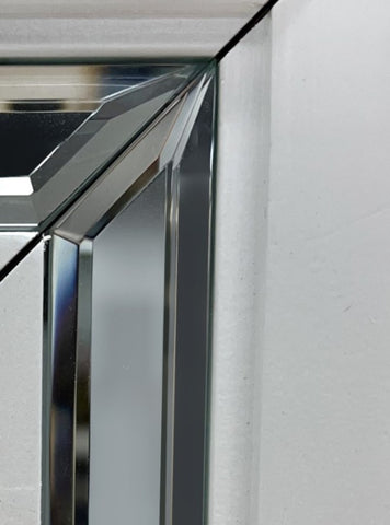 Mirrored trim and elongated drawer pulls add captivating pizzazz