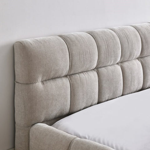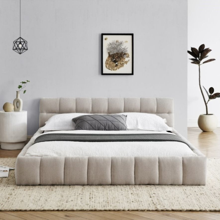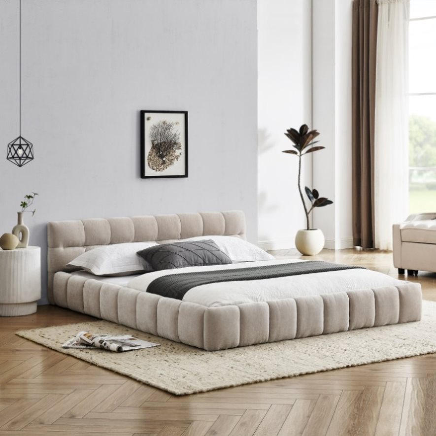 [Unique Grounded Queen Size Bed] - This grounded upholstered bed will be both a beautiful piece in the room and a place full of fun for your family. This beautiful modern queen bed frame adds a contemporary chic look to your bedroom and is upholstered in thick chenille fabric to add extra comfort.