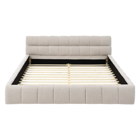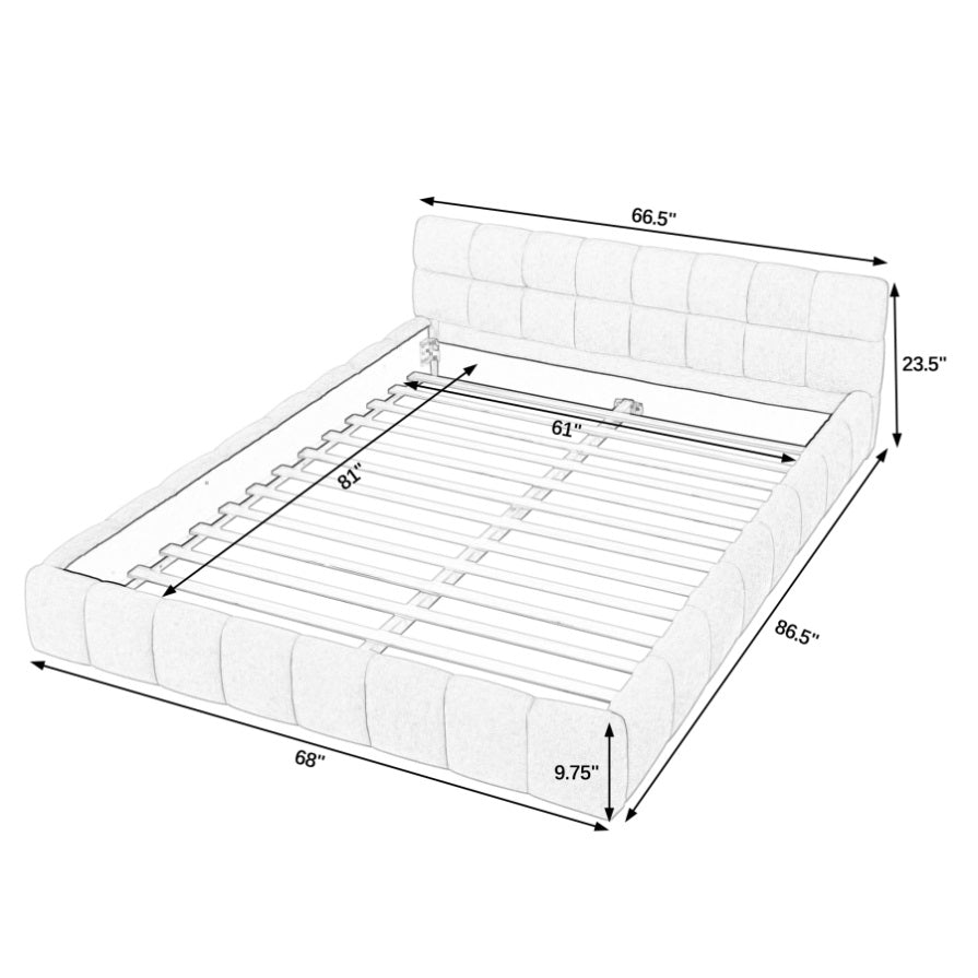 [Modern Elegant Queen Size Platform Bed] - The clean lines of this upholstered platform bed queen size create a peaceful atmosphere, and the unique design of the headboard, footboard and side rails give a cozy feel that will not only fit in with any home decor, but will become the centerpiece of your room.