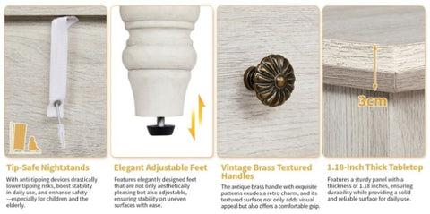 Unlike ordinary MDF legs, this nightstand is supported by solid wood legs, providing extra stability and durability. The natural wood grain adds an authentic vintage feel while ensuring the piece remains strong and wobble-free, even on uneven floors. -