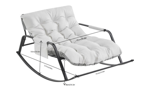 DELUXE COMFORT:Our samba rocking lounge chair features a comfortably contoured seat design and a gentle gliding motion,providing a smooth rocking rhythm.The large seat and generous backrest perfectly contour the curves of your body,offering a cozy spot to rest and relax.Envision a leisurely rocking moment with your eyes closed.