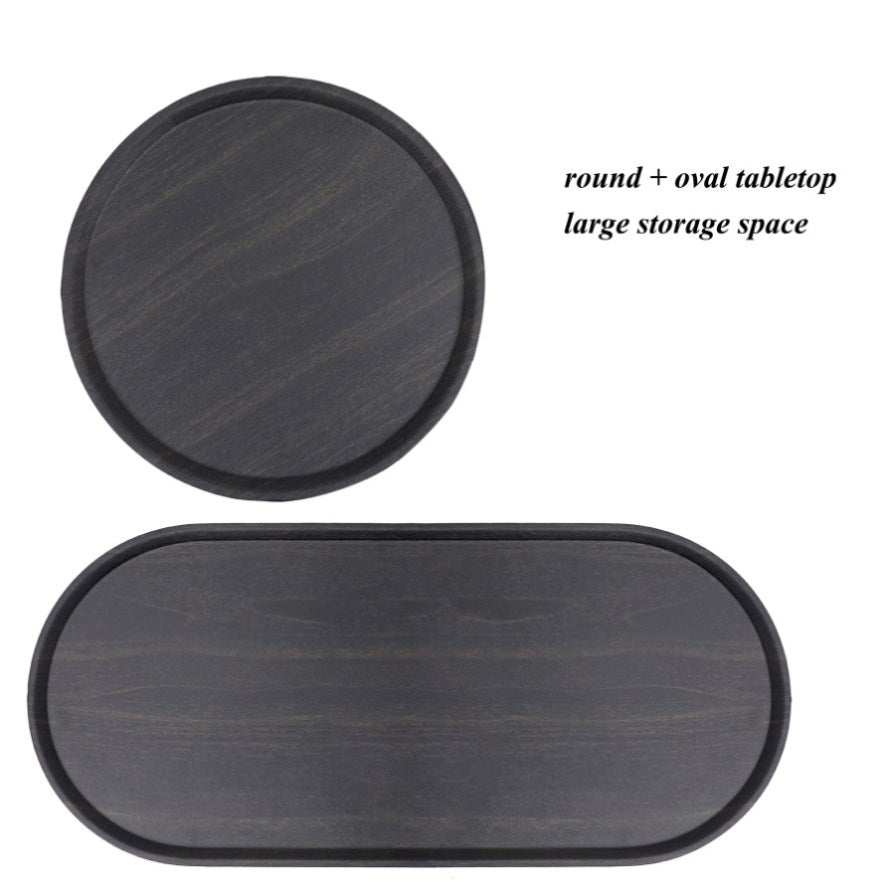 Versatile & Practical:: Our black round coffee table is not only a stylish addition to your living room decor but also practical for daily use. The 2 storage trays provides ample space for your magazines, remote controls, snacks, and drinks.