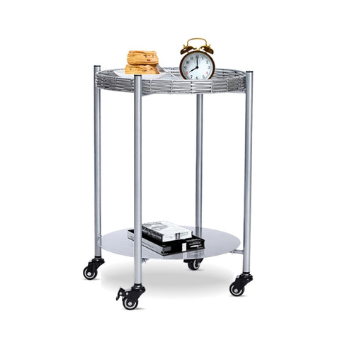 Round Coffee Table with Wheels 2-Tier Movable Side Tables Silver Metal Detachable Bedside Nightstand W1757P336139