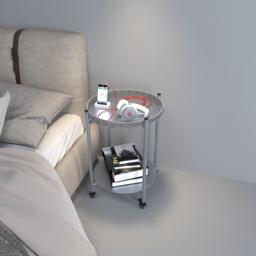Designed to enhance every corner of your home, this round side table is the perfect companion. Create a welcoming atmosphere in your living room when guests arrive; effortlessly roll it close for coffee, tea, or conversation. Its adaptable nature makes it equally perfect as a stable bedside nightstand holding your lamp and nighttime essentials, a chic end table anchoring your sofa, or a functional accent piece in your bedroom, hallway, or even patio. Crafted from durable metal for lasting quality and featuring a timeless round design, it complements any décor style. Elevate your space with the perfect combination of smart functionality, robust construction, and effortless mobility – redefine convenience in your home today.