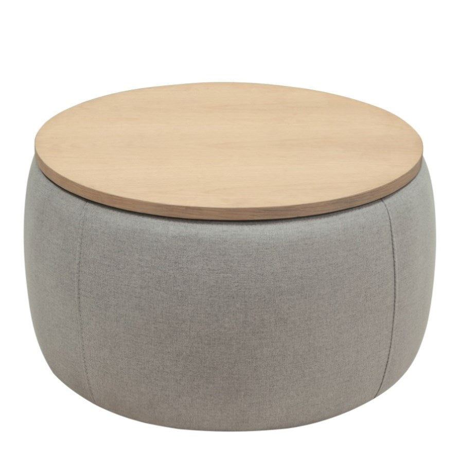Round Storage Ottoman, 2 in 1 Function, Work as End table and Ottoman, Grey W48735177