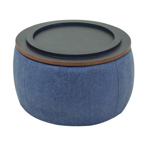 Round Storage Ottoman, 2 in 1 Function, Work as End table and Ottoman, Navy W48735176