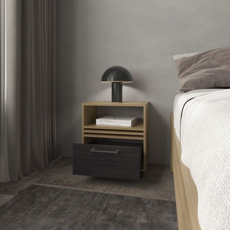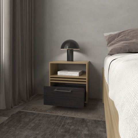 Modern nightstand featuring a spacious drawer for convenient storage, keeping your personal belongings neatly tucked away. It also includes an open shelf, perfect for books or decorative items. Its clean lines and minimalist finishes make it a versatile addition to any bedroom decor.""