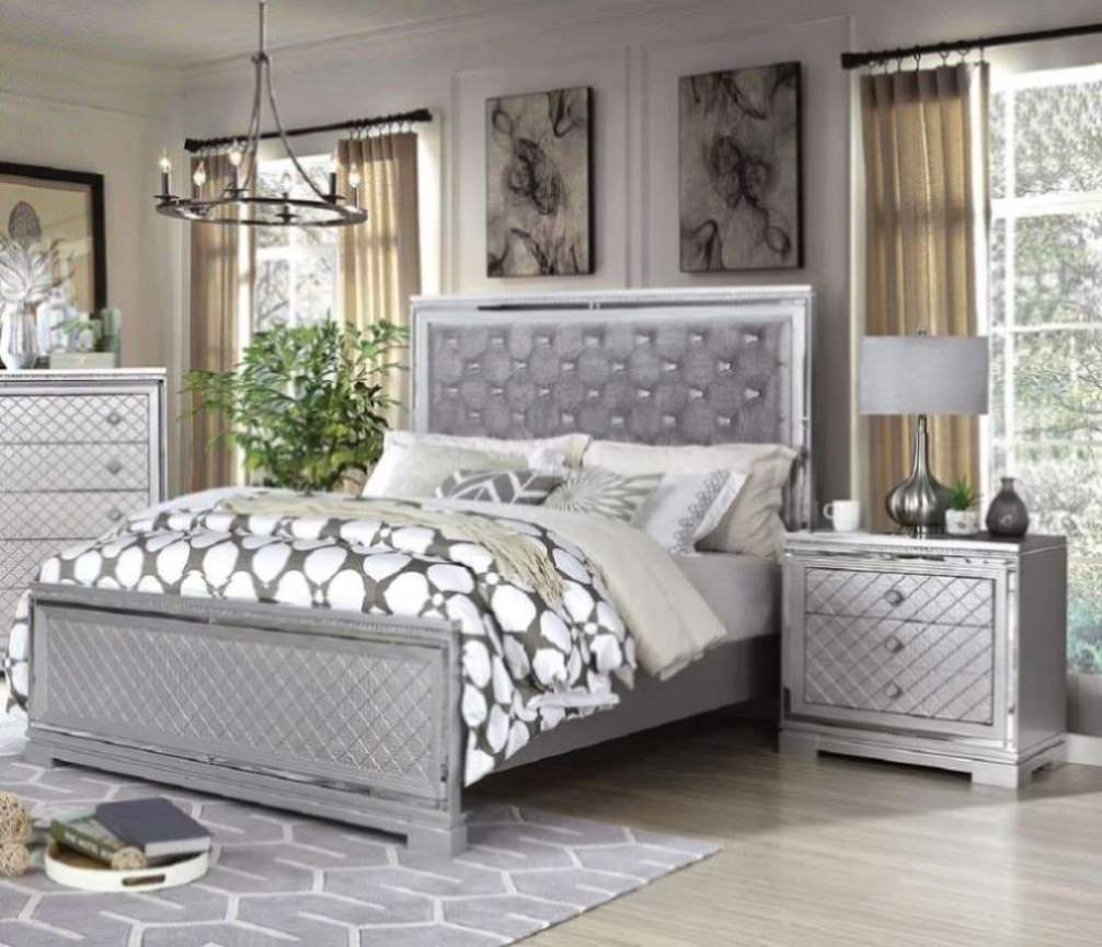 Talking about taking glam to the next level! Straight lines and simple silhouettes are reminiscent of the modern era, but the stunning details bring it up a notch. Front panels feature a criss-crossing motif, adding texture to the set and will surely elevate any Hollywood-inspired room.