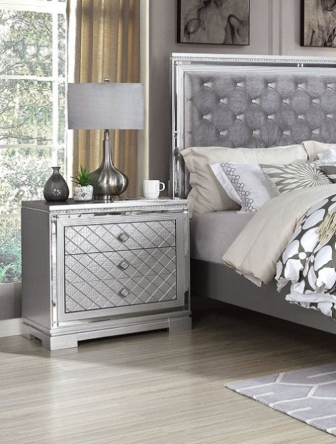 Silver Finish 1pc Nightstand Bedside Table Hidden Jewelry Drawer Chrome Square Knob USB Charger B011P165671
