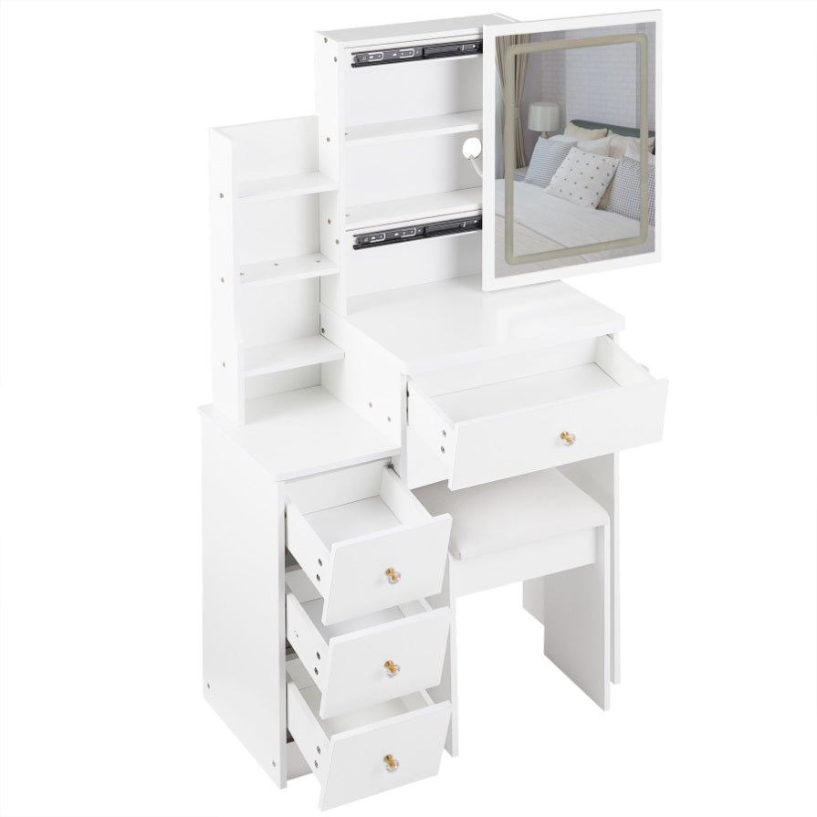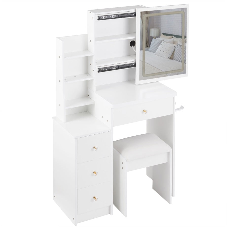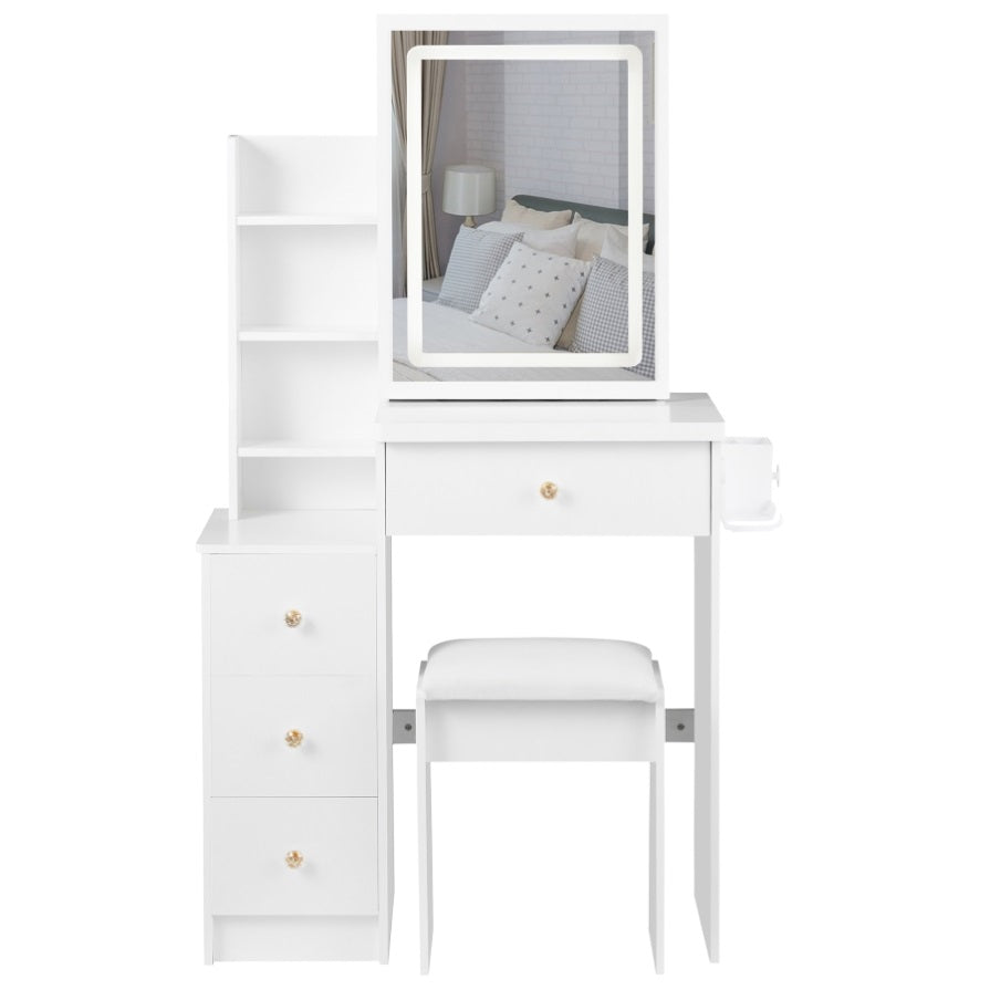 [Includes a padded dressing table stool]: The packaging includes a dressing table and a padded stool. You will no longer need to make additional purchases. This will greatly save you time and delivery cost.