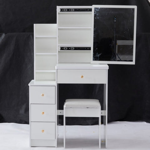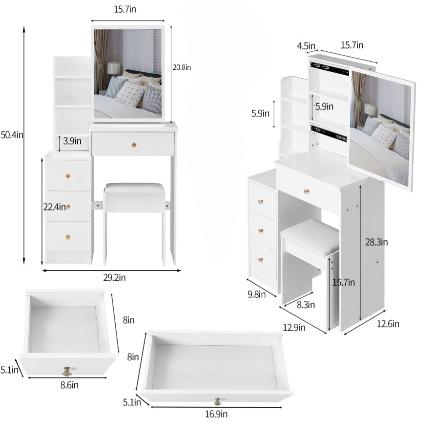 [Includes a padded dressing table stool]: The packaging includes a dressing table and a padded stool. You will no longer need to make additional purchases. This will greatly save you time and delivery cost.
