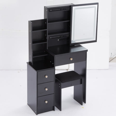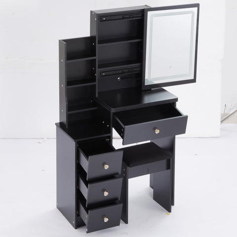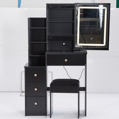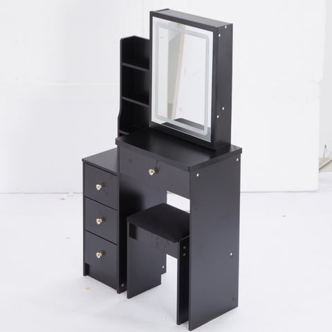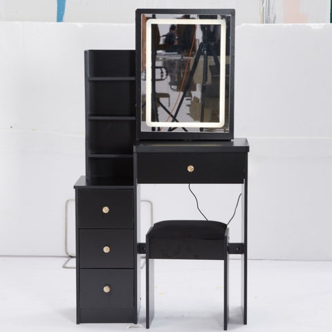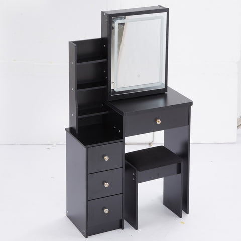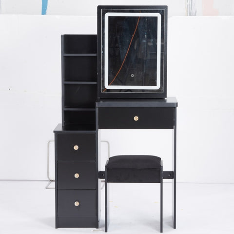 Small Size Left Bedside Cabinet Vanity Table Cushioned Stool, Touch Control Sliding LED Mirror, W936P226032