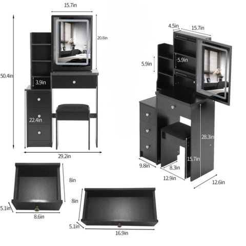 [Designed for small space]: This vanity table set is 29.2" in length and 50.4" in height, designed specifically for small bedrooms. Its advantage is that it takes up less space, so its size is not large. Before purchasing, please note that this is a small-sized dressing table, choose the appropriate size of dressing table according to the user's body shape and the size of the space where the dressing table is placed.