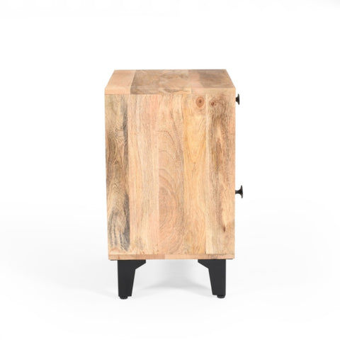 Introducing our sleek 1-drawer nightstand, a perfect addition to your bedroom's aesthetic. It’s made from solid mango wood in a natural finish with hand-carved line drawing on its cabinet front. It’s made by skilled artisans, so it has that handcrafted quality we love. Perfect for keeping your bedside essentials organized, this nightstand provides space for your favorite books, toys and more. The top surface offers room for a table lamp and a spot to charge your phone or photos.