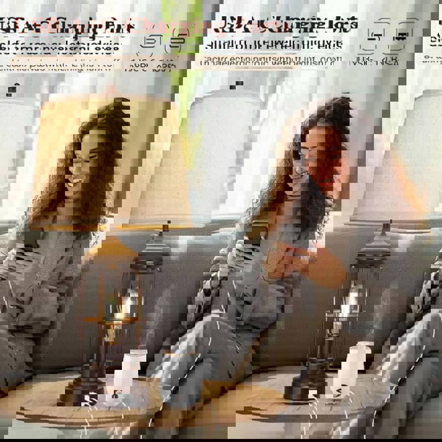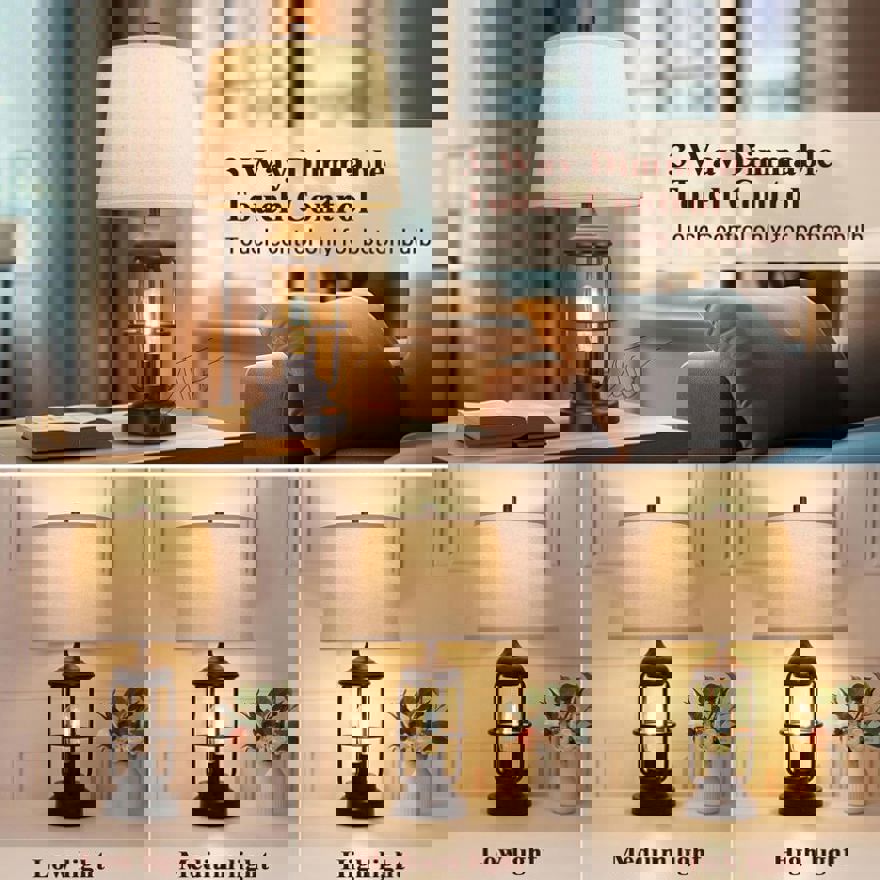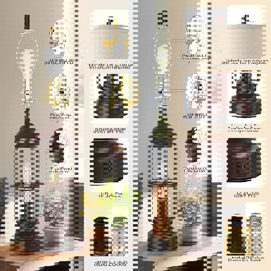 Well-made and sturdy structure : The nightstand lamps set of 2 is made of high-quality alloy coated with a layer of baking paint, elegant, beautiful but also anti-rust. The rotary switch and harp are made of sturdy metal. We also add a load-bearing block to the base inside to enhance the stability of the touch lamp base without shaking or slipper. This farmhouse table lamp's brown tones and elegant frame make rustic lamp suitable for a bedroom, office, foyer, family room or living room.