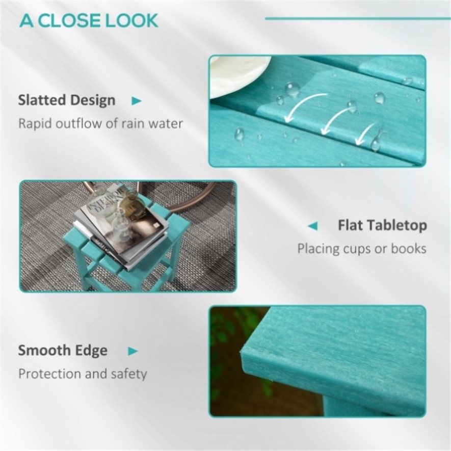 • - Adirondack-style patio end table that works as a coffee table, side table, or flower stand