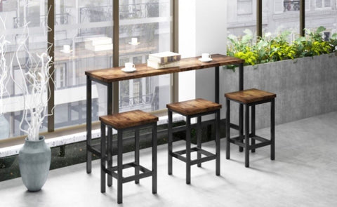 [4-Piece Counter Height Table Set] Made of high quality steel frame and MDF panels, this dining table set comes with 1 counter height long table and 3 stools. For extra comfort, all of the table and stools are designed with foot rests, which are not only sturdier but more humanized. Just rest your feet when enjoying drinking or eating.