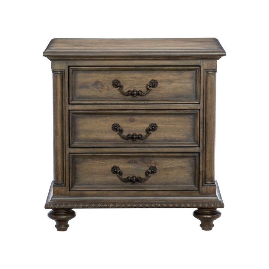 Traditional Vintage Style 1pc Nightstand of 3 Drawers Metal Hardware Weathered Pecan Finish Classic B011P186802