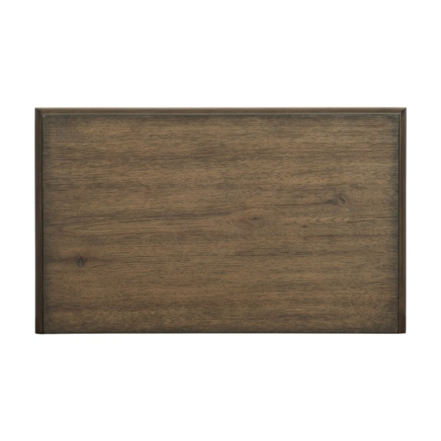 The balance of rusticated accenting and elegant form is exquisitely achieved in the design of the Rachelle Collection. The traditionally styled nightstand features classic appointments such as turned feet brown-finished metal drop hardware, egg and dart molding and rounded pilasters. The knotty pecan wood veneer features a weathered pecan finish further lending to the classic look of the collection.