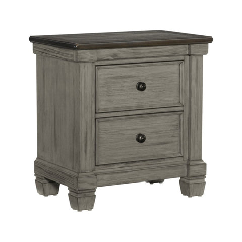 Transitional-Rustic Style Coffee and Antique Gray 2-Drawer Nightstand 1pc Flat Knobs Classic Bedroom B011P240234