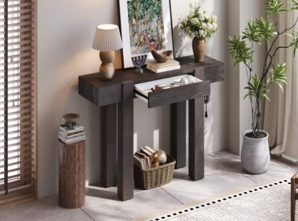 Rustic-Minimalist Charm: Thick solid wood construction embodies rustic appeal, while clean, sleek lines reflect minimalist style—perfectly blending the two aesthetics. It works great as a console table or entryway table, seamlessly fitting farmhouse, contemporary, or eclectic interiors. Whether placed in entryways, living rooms, or home offices, it serves as a functional daily piece and a timeless stylish focal point, never feeling outdated.