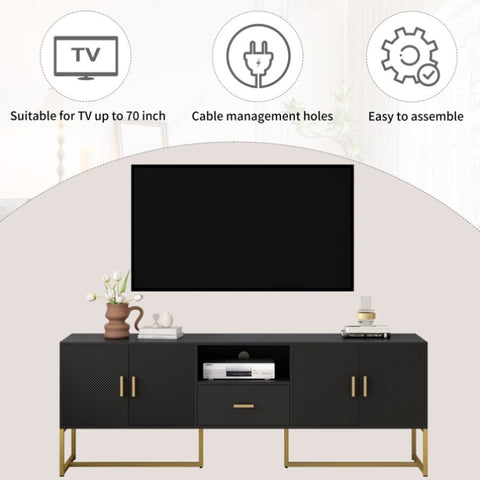 U-Can Modern TV Stand for TV up to 70 Inches,TV Cabinet with 1 Drawer, 2 Cabinets and Metal Legs, N724P198472B
