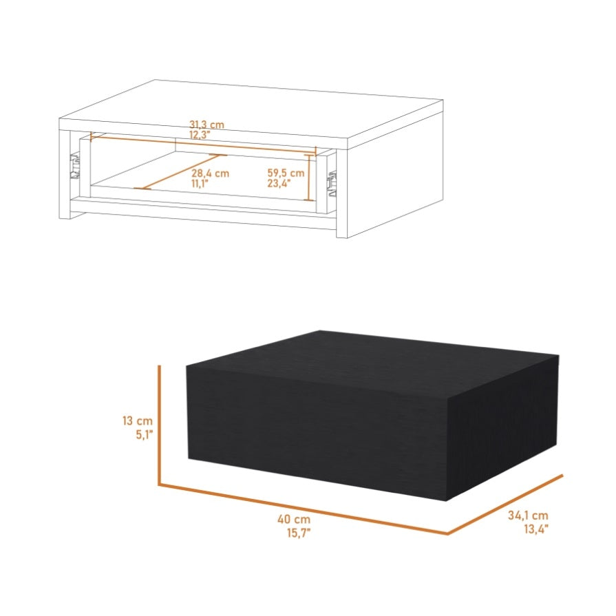 "Discover the Vienna Floating Nightstand – a masterpiece of modern minimalism and functionality. Designed for a seamless wall-mount, this piece frees up floor space, giving your room an airy, uncluttered vibe. The generously sized top surface, measuring 15.7""W x 13.4""D, offers a convenient platform for your nighttime essentials. Below, a spacious drawer boasting dimensions of 12.3""W x 23.4""H x 11.1""D provides ample storage for personal items. The Vienna effortlessly complements many interiors with finishes ranging from dark brown, black, white, light gray, and macadamia.