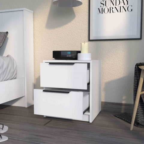 FM FURNITURE Washington Nightstand, Two Large Drawers ,White