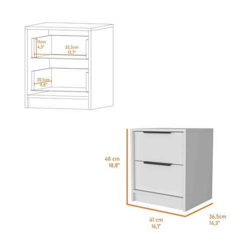 FM FURNITURE Washington Nightstand, Two Large Drawers ,White -Bedroom