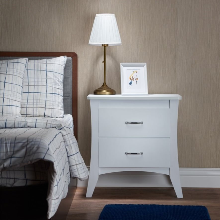 Enhance your bedroom with our elegant rectangular nightstand, featuring a sturdy wooden case-frame and stylish tapered legs. Offering practical storage with two spacious drawers, each equipped with smooth side metal glides, this nightstand combines functionality with timeless design.