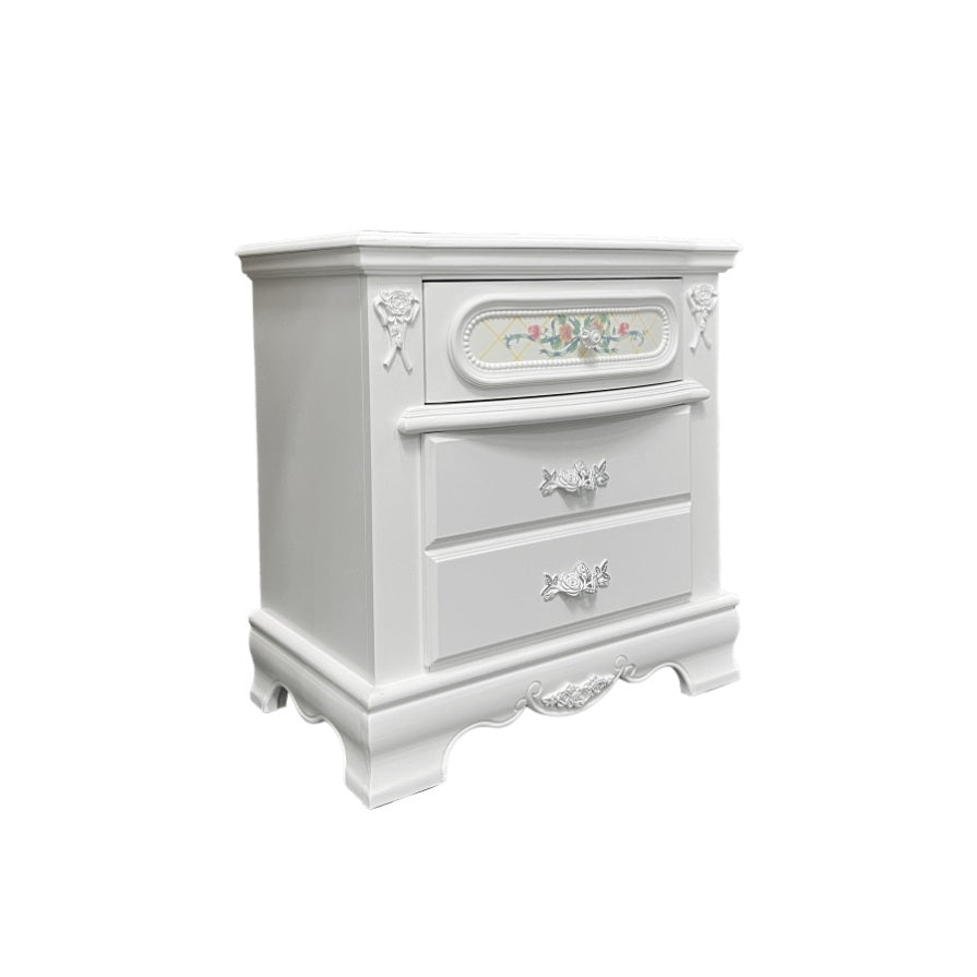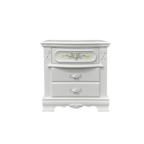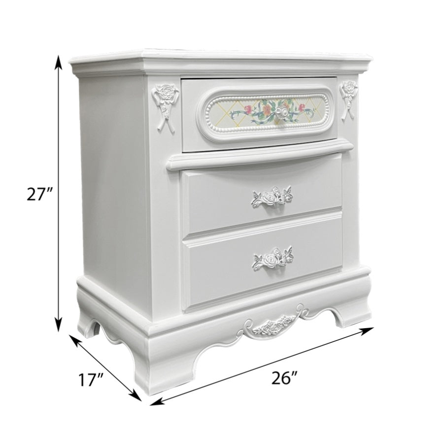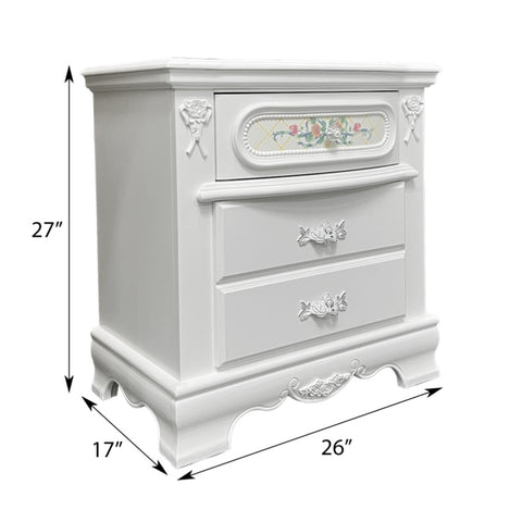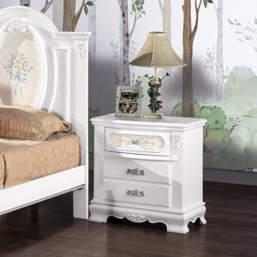 White 2-Drawer Nightstand with Floral Motifs B062P209008