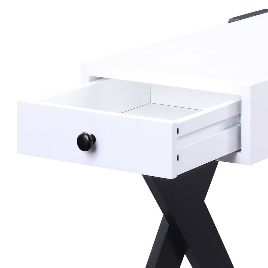 Elevate your living space with this rectangular side table, offering both functionality and style with its convenient drawer for storing small items and integrated dual USB ports for hassle-free device charging. The X-shape leg design adds a unique and stylish touch, making it a perfect addition next to your sofa, bed, or favorite armchair.