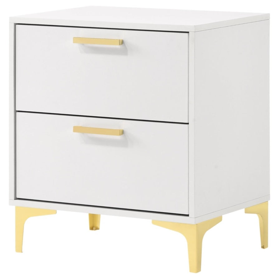 White and Gold 2-Drawer Rectangular Nightstand B062P145600