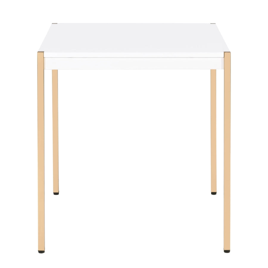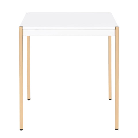 Enhance your living space with this elegant end table boasting a sophisticated white and gold finish, perfectly blending contemporary flair with timeless charm. Its spacious tabletop offers ample room for displaying decor, beverages, or reading materials, while the sleek metal legs ensure both stability and a modern aesthetic, making it a versatile addition to any modern or minimalist decor scheme.