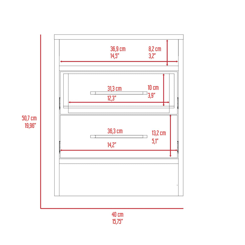 This unit features two drawers for convenient storage of clothing, accessories, or personal items, keeping your space organized and clutter-free. The light oak and white combination provides a bright, contemporary look, while the single shelf adds versatile storage or display space, and the rectangular shape ensures a classic, functional design that fits well in various spaces.