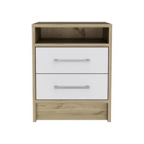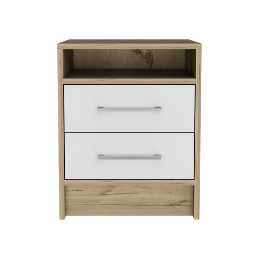 White and Light Oak 2-Drawer 1-Shelf Rectangle Nightstand B06280358