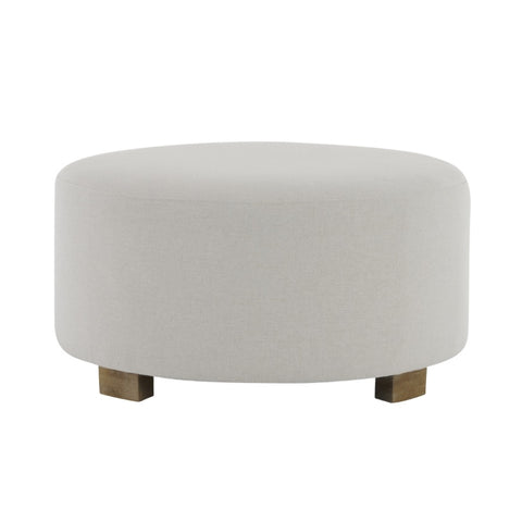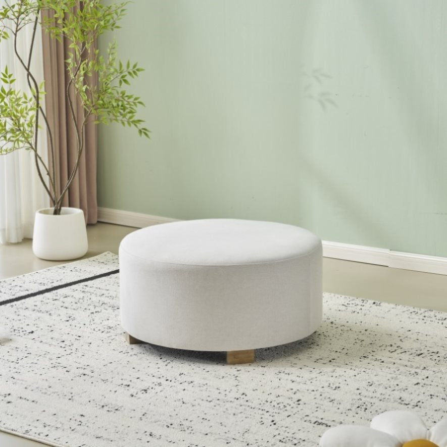 White Fabric Round Ottoman with Wooden Legs, Modern Minimalist Ottoman N769P296232W