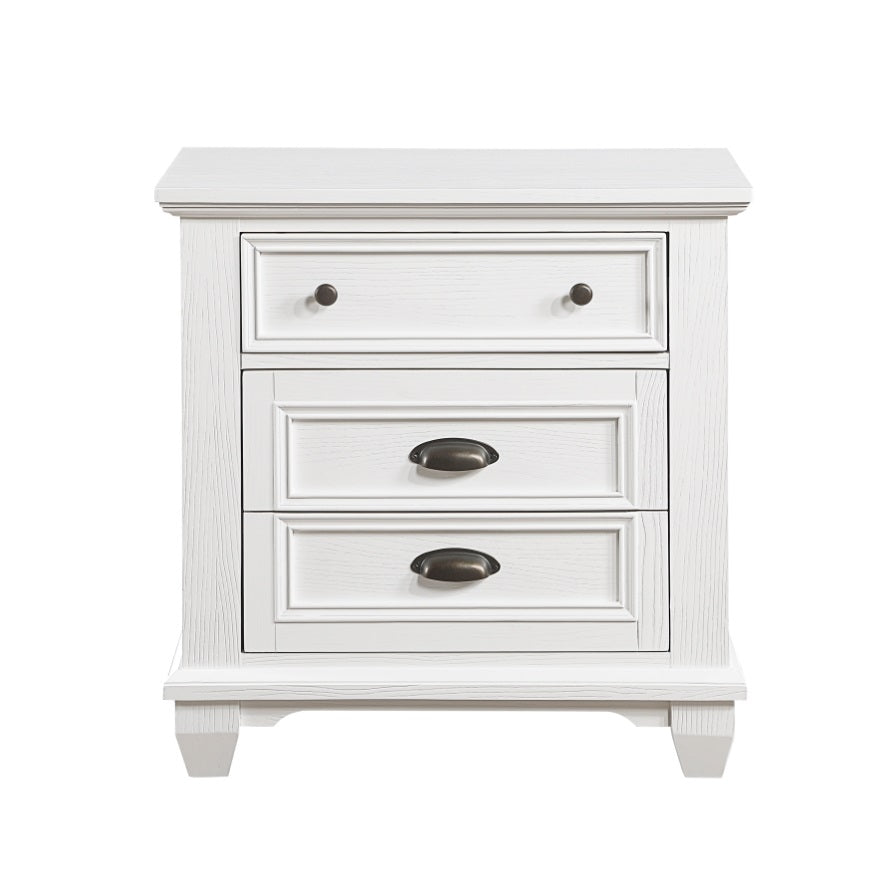Bringing to mind lazy days at the beach, or peaceful afternoons in the country, the Mackinac Collections charming aesthetic pairs to your homes classic décor. The traditional framing of the collection is covered in a white finish, its bright hue a refreshing addition to your bedroom. The knob and cup pull hardware of the nightstand features an antique brass finish, providing complementing contrast, and charming accent, to the white finish of the collection.