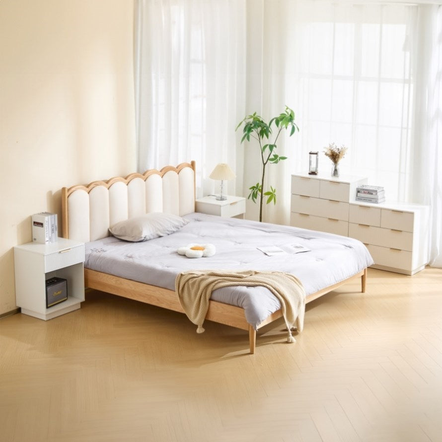 Wavy Pattern Drawers: The distinctive wavy pattern on the drawer fronts adds a modern and artistic touch to any bedroom decor, making it not only functional but also aesthetically pleasing.