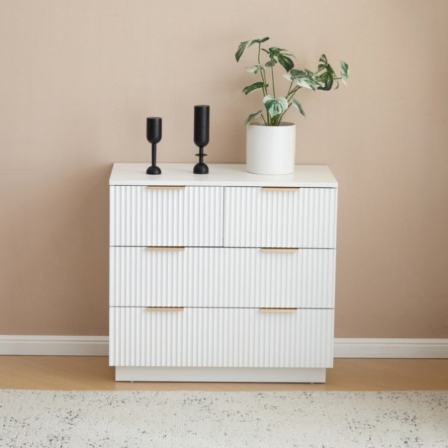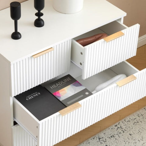 White P2 Particle Board and Density Board Wavy Pattern Drawer Front Three-Level Four-Drawer Bedside 33325680
