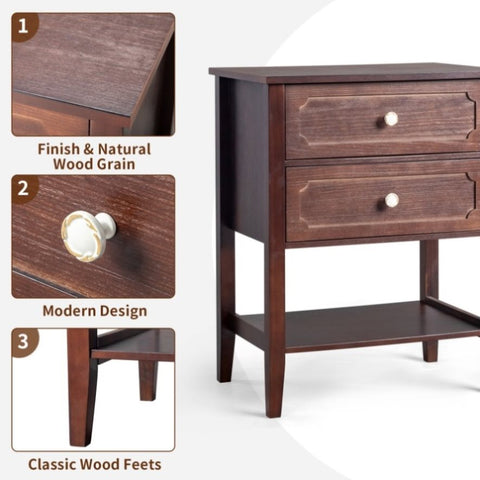 Wood Nightstand End Side Table with 2 Drawer for Living Room, Bedroom 71649672