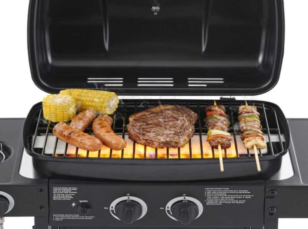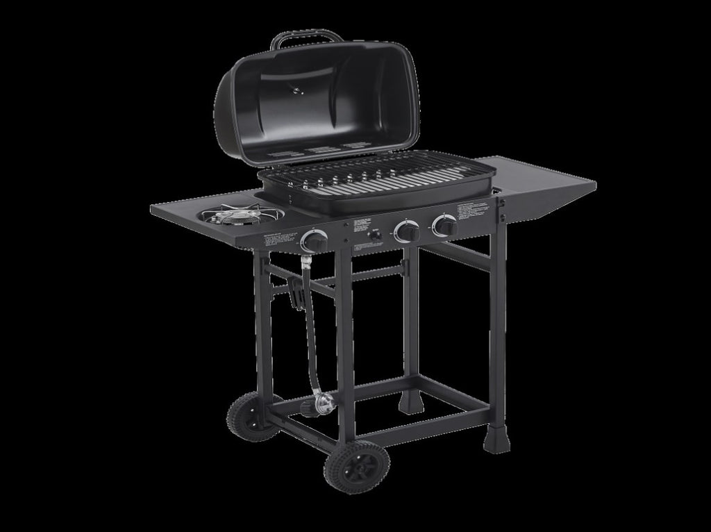 - This outdoor gas grill features 2 main burners and 1 side burner, delivering a total of 24000 BTU; Perfect for searing steaks and cooking with pots and pans, quick start up with the push &turn of a control knob.